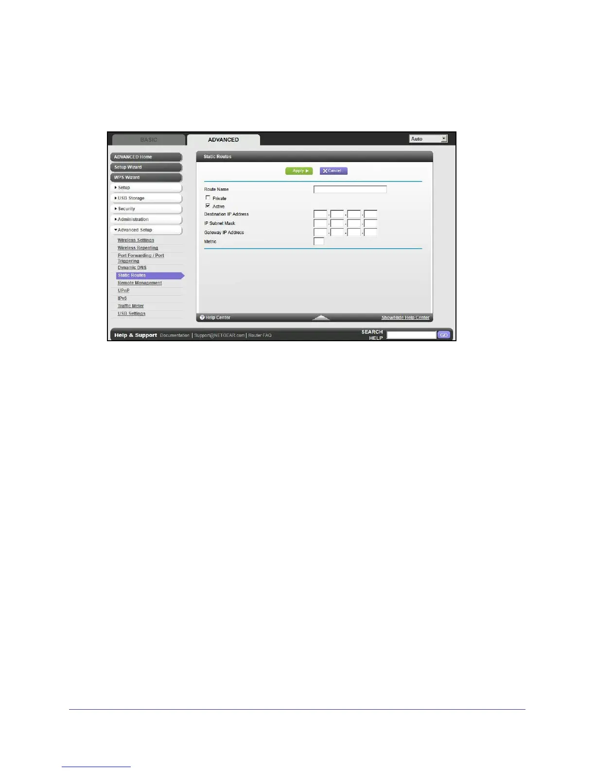 1. Select Advanced > Advanced Setup > Static Routes, and click Add to display the