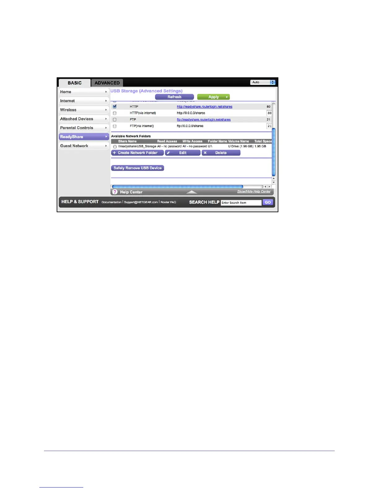 • Share Name. If only 1 device is connected, the default share name is USB_Storage. You