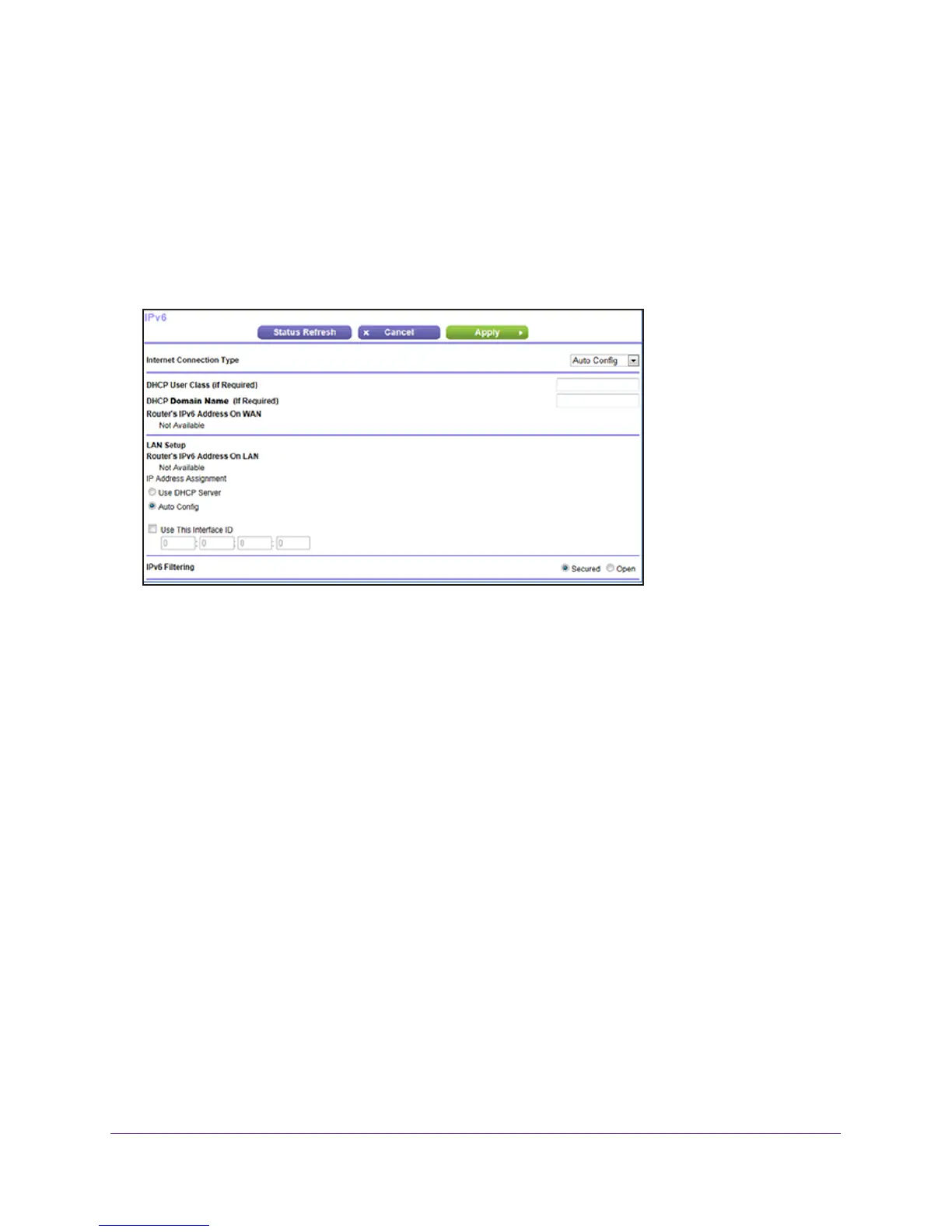 In the IPv6 screen, when you select Auto Config from the drop-down list, the following