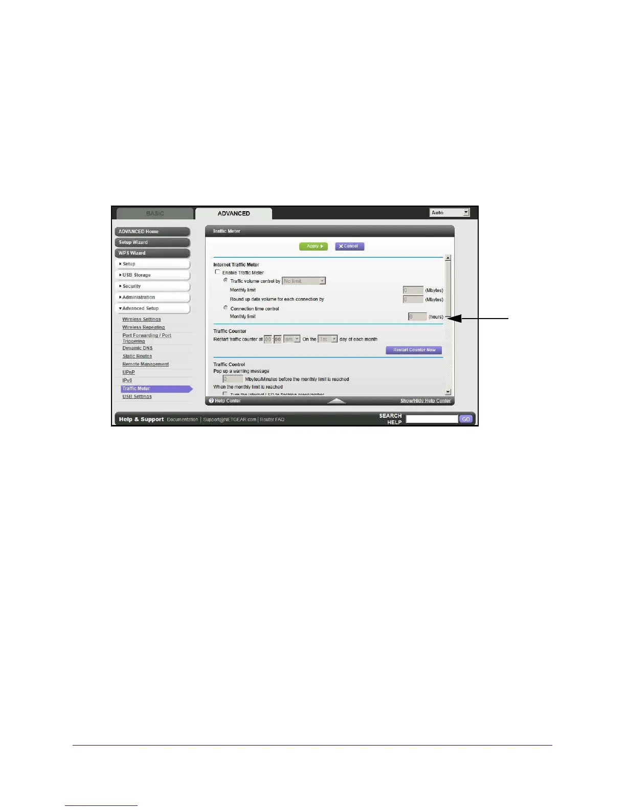 router’s Internet port. With the Traffic Meter utility, you can set limits for traffic volume, set a