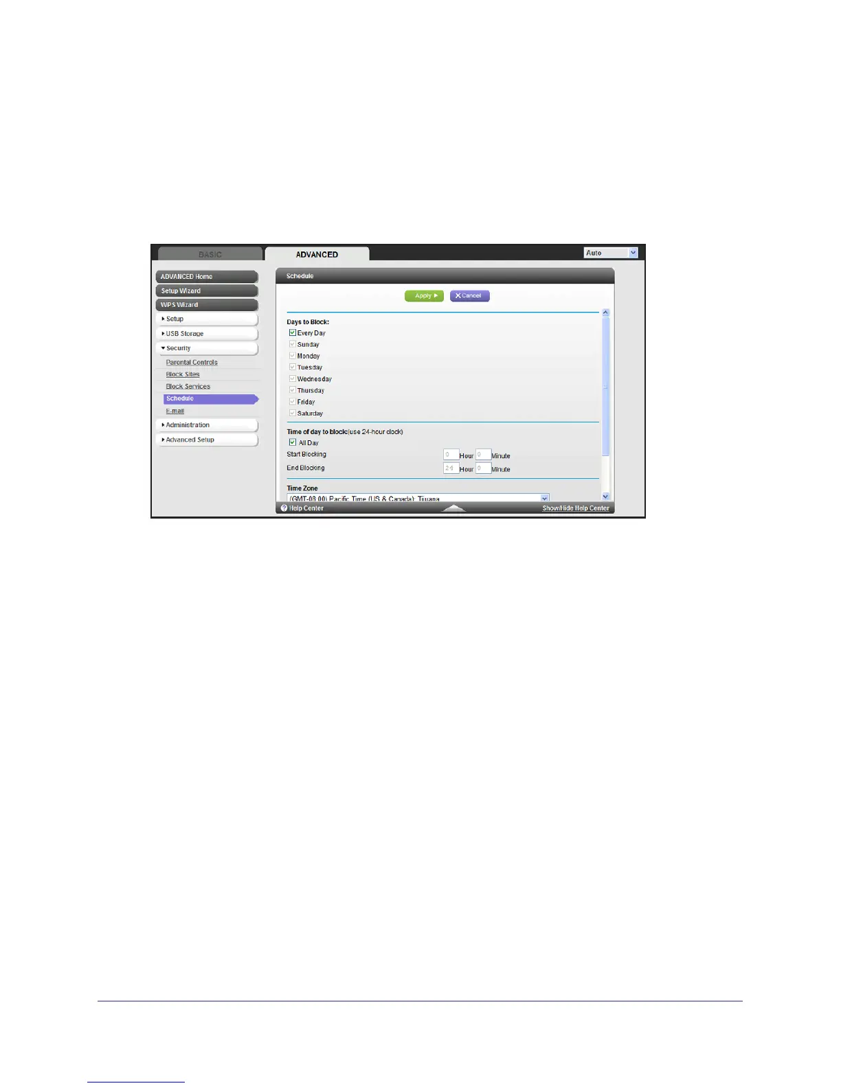 1. Select Advanced > Security > Schedule to display the following screen: