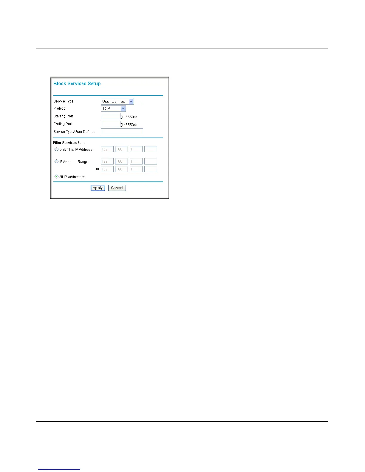 3. Specify a service for blocking by clicking Add. The Block Services Setup screen displays.