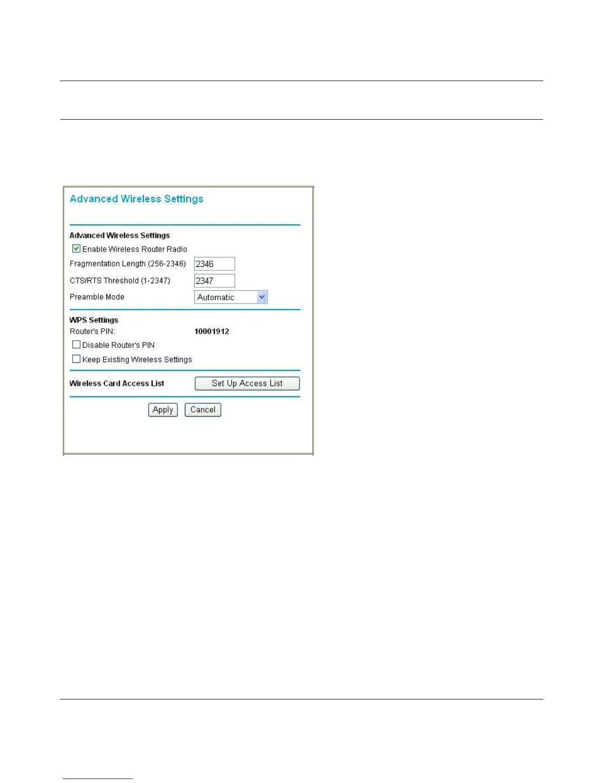 You can use the Advanced Wireless Settings screen to enable or disable the wireless router. From