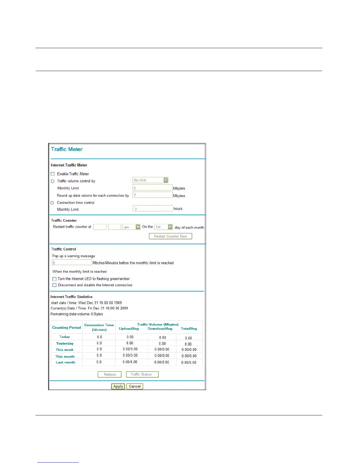 Traffic Metering allows you to monitor the volume of Internet traffic passing through your router’s