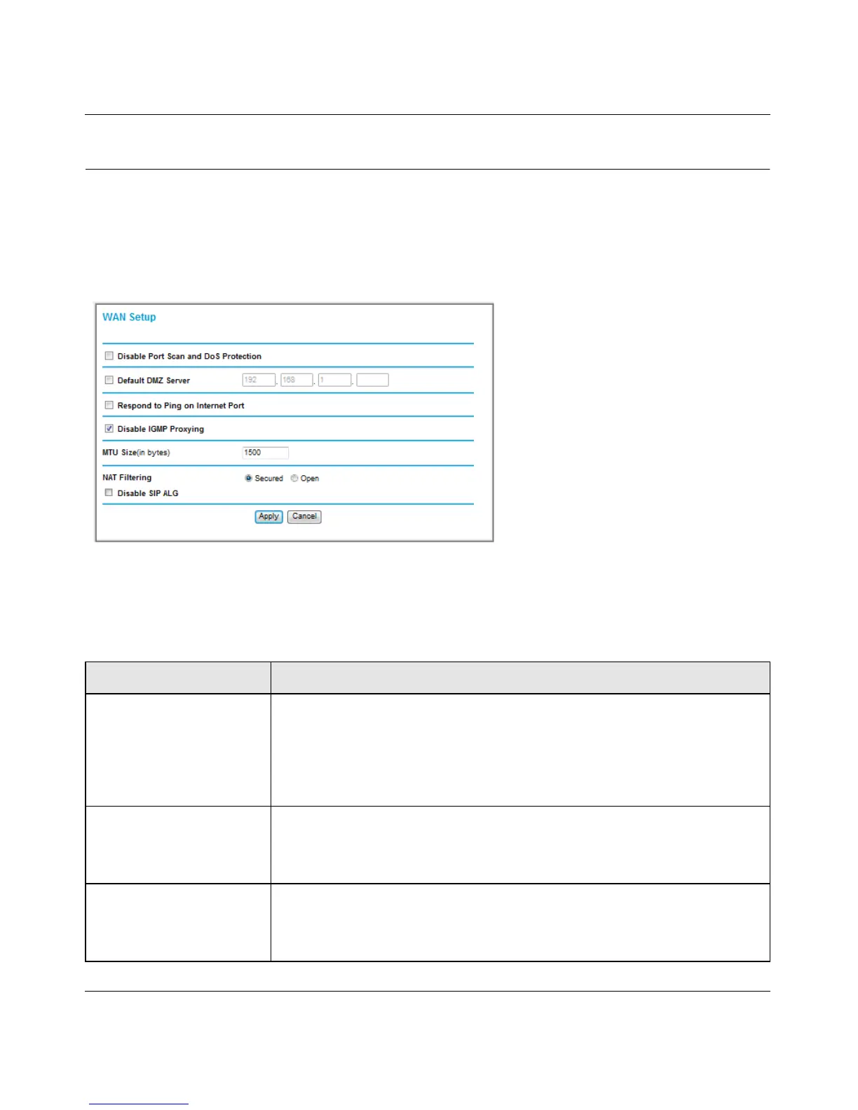 WAN (Internet) port. From the main menu, under Advanced, click WAN Setup to view the WAN