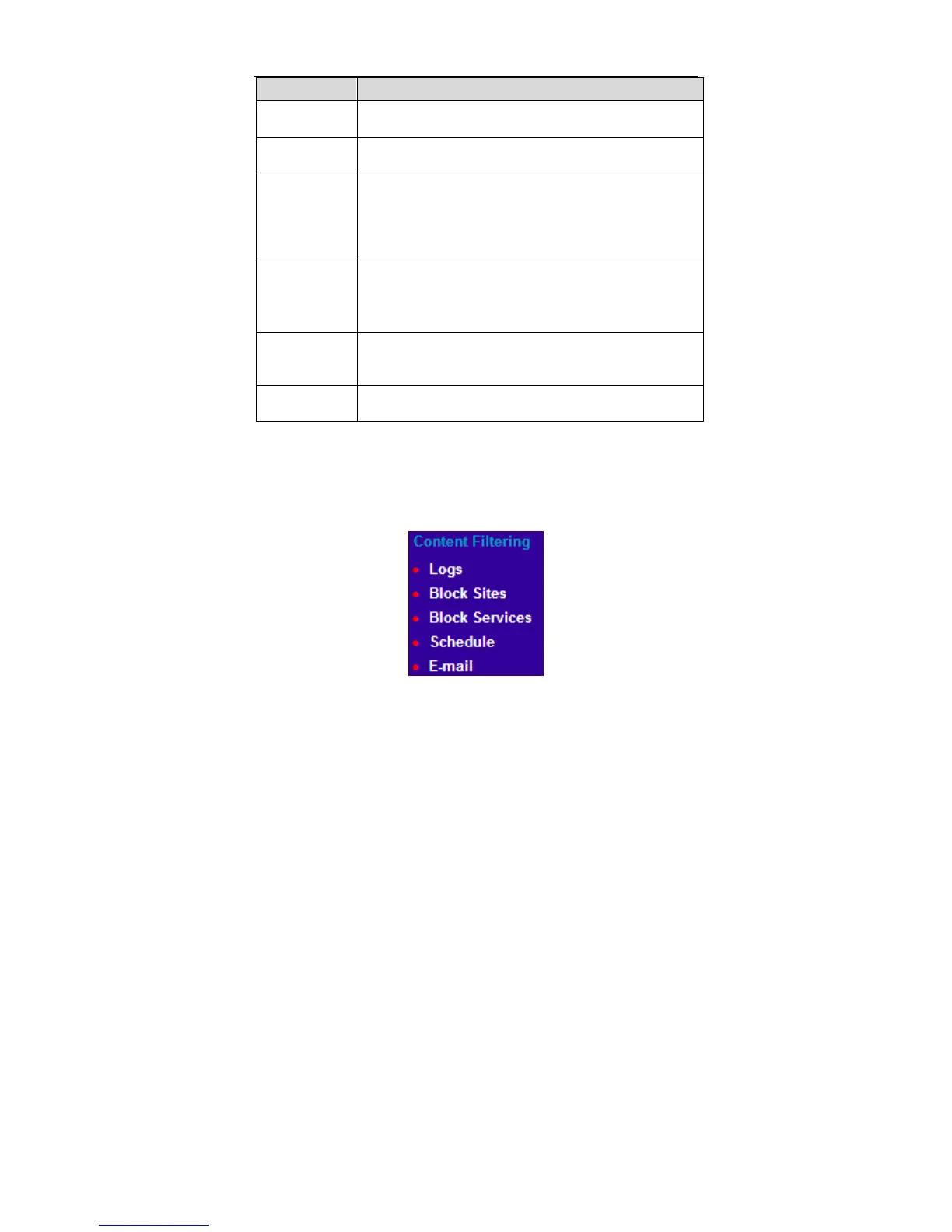 Click Content Filtering and the extended navigation menu is shown as follows: