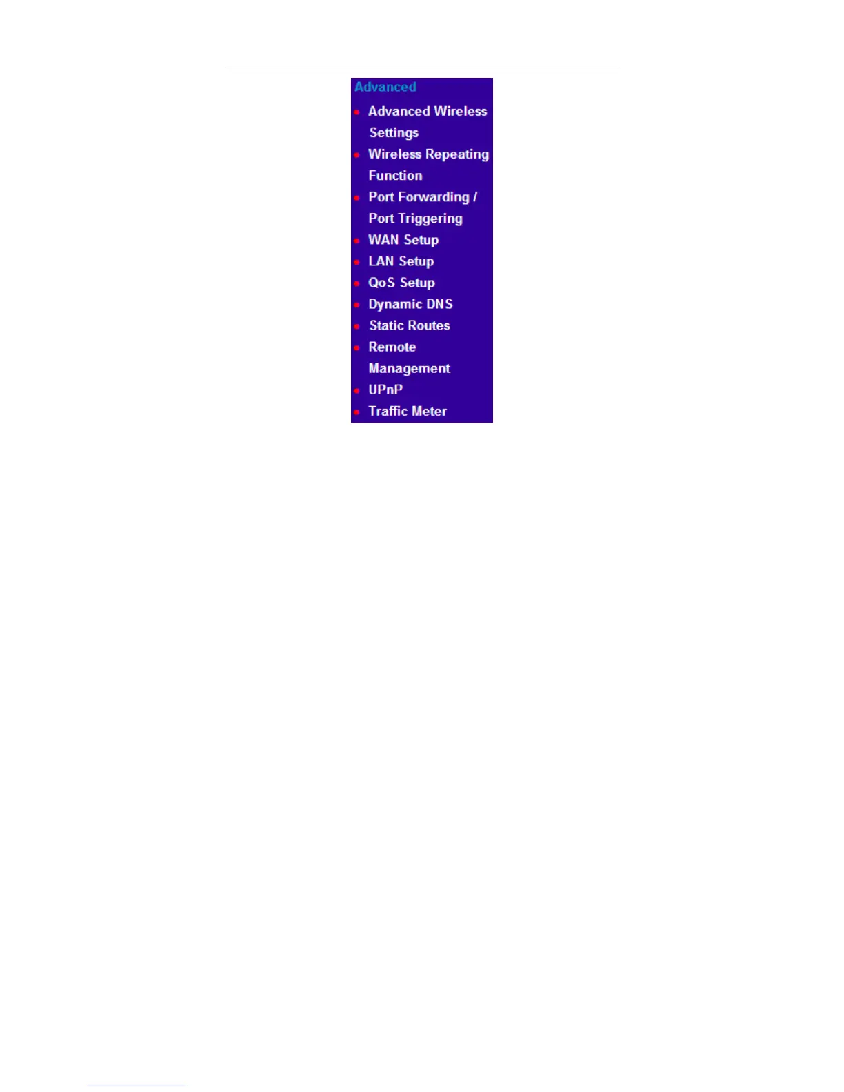 Wireless Repeating Function, Port Forwarding/Port Triggering, WAN Setup,