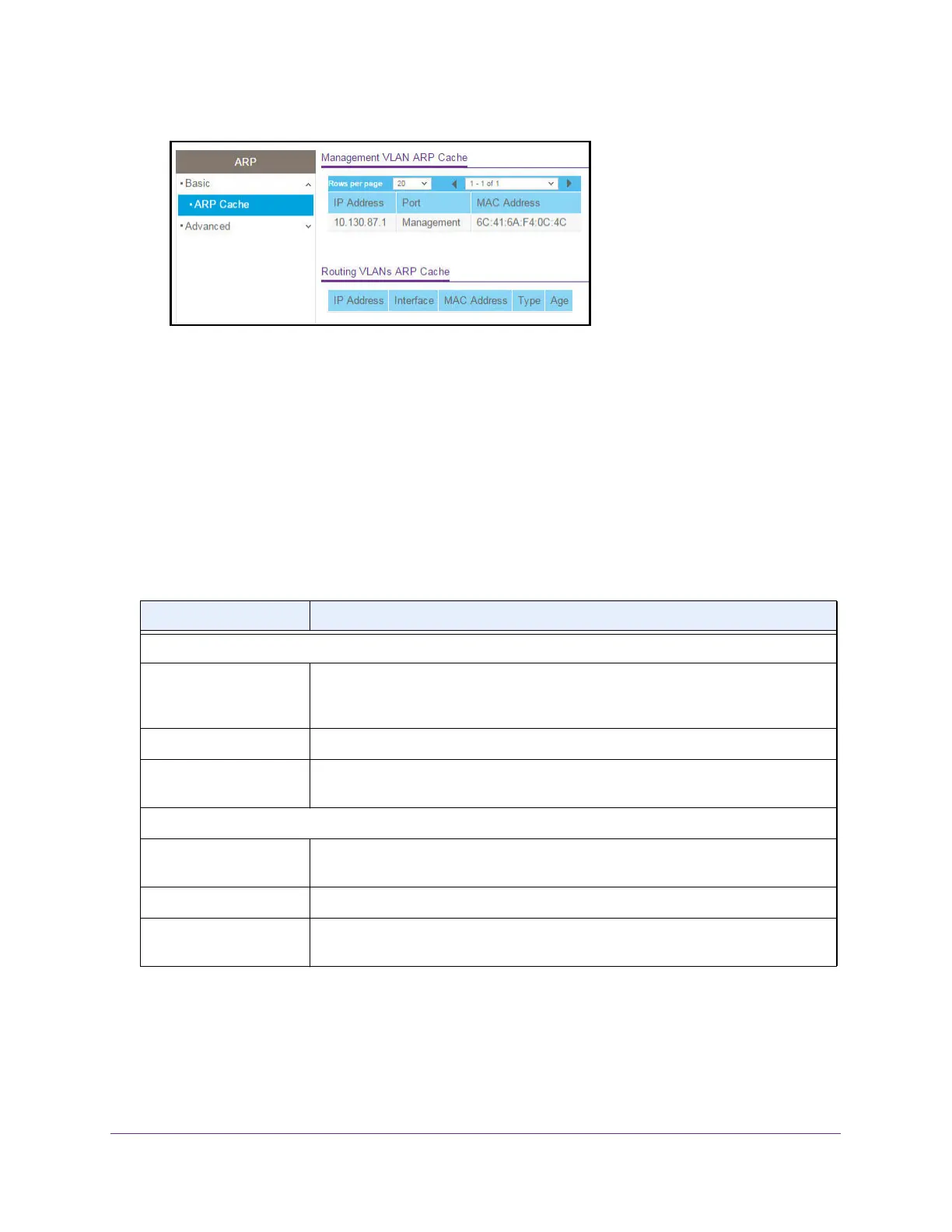 Management VLAN ARP Cache
