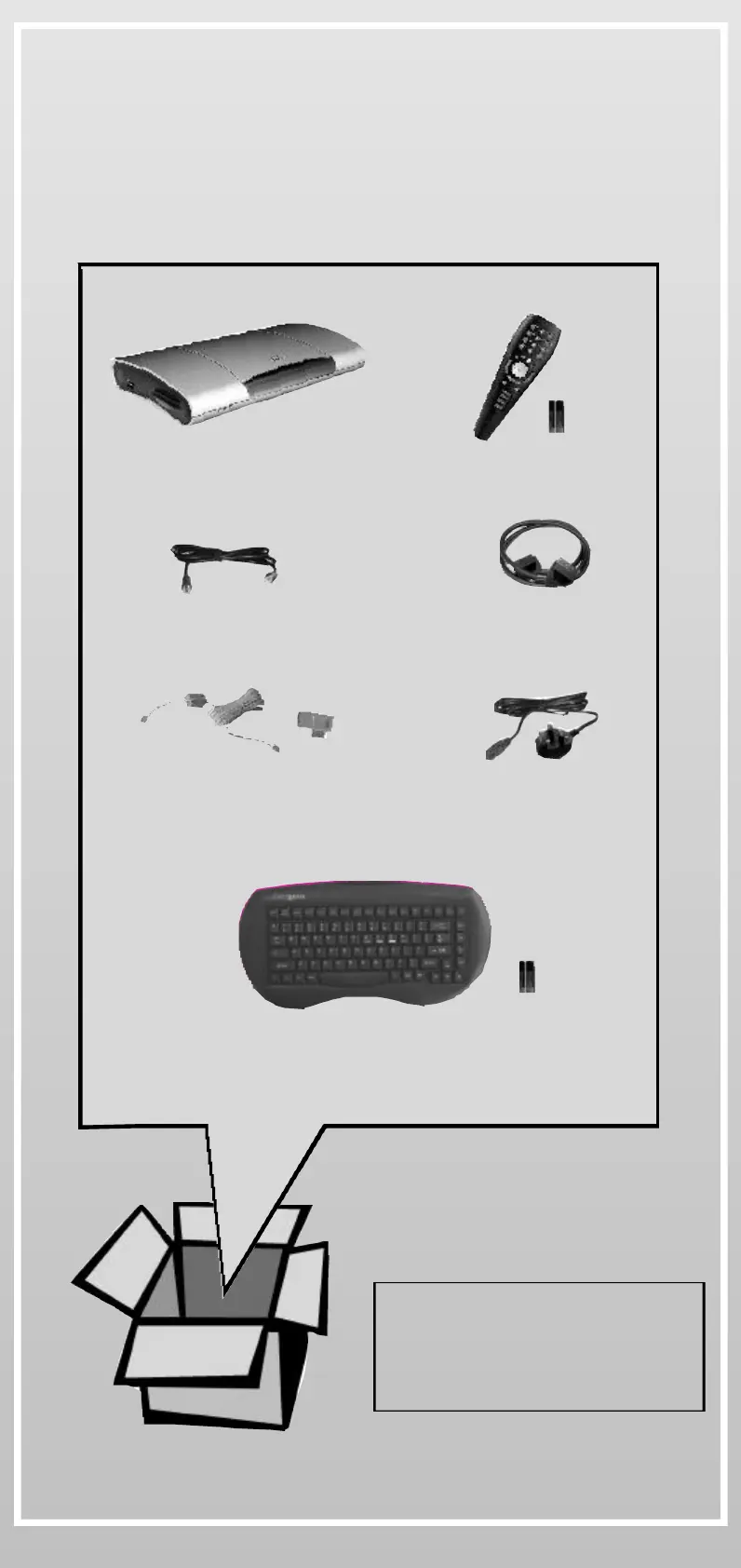 Phone cable + adaptor Mains power cable