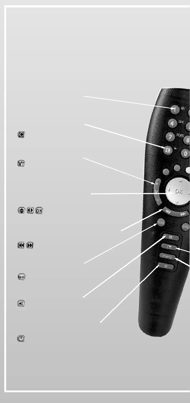 • To test your Remote Control, press any key and check if the red light