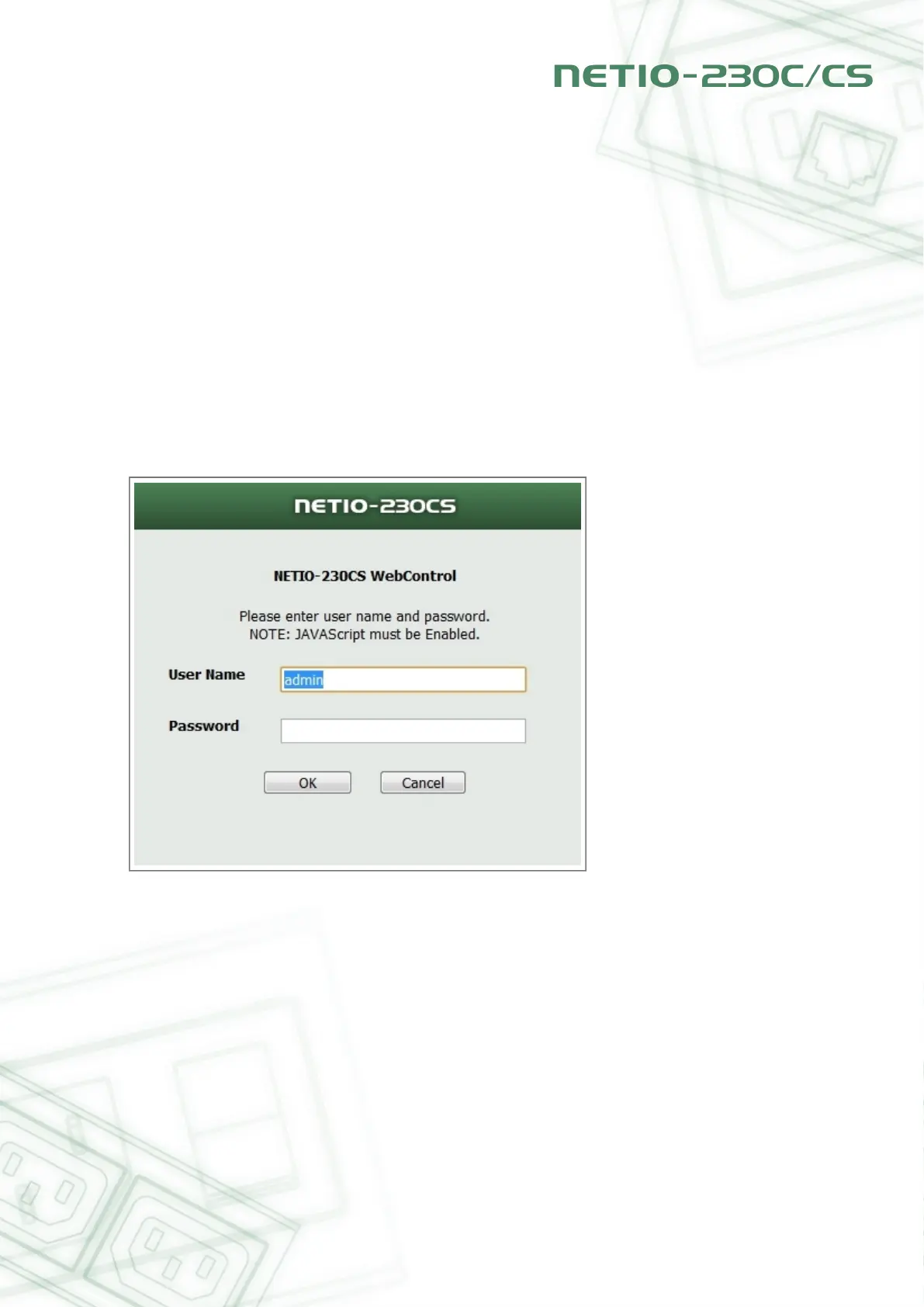 5. The login page is displayed. Enter the User Name, Password and click the OK button. You access the device