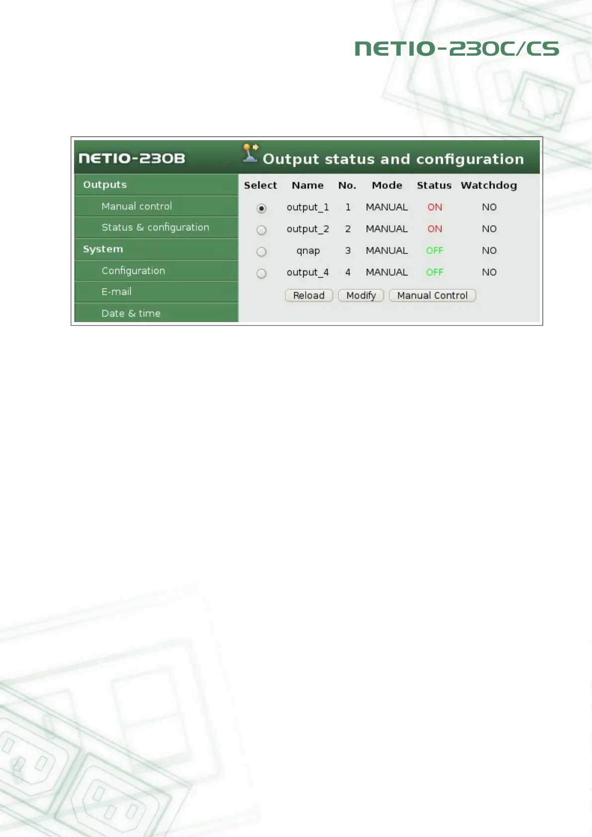 To set a specific port, select the desired port in the column Select and click the button Modify.