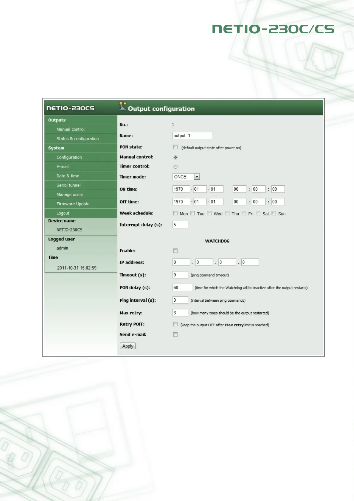 Manual control: makes possible manual control of the port, deactivates automatic timer control. This