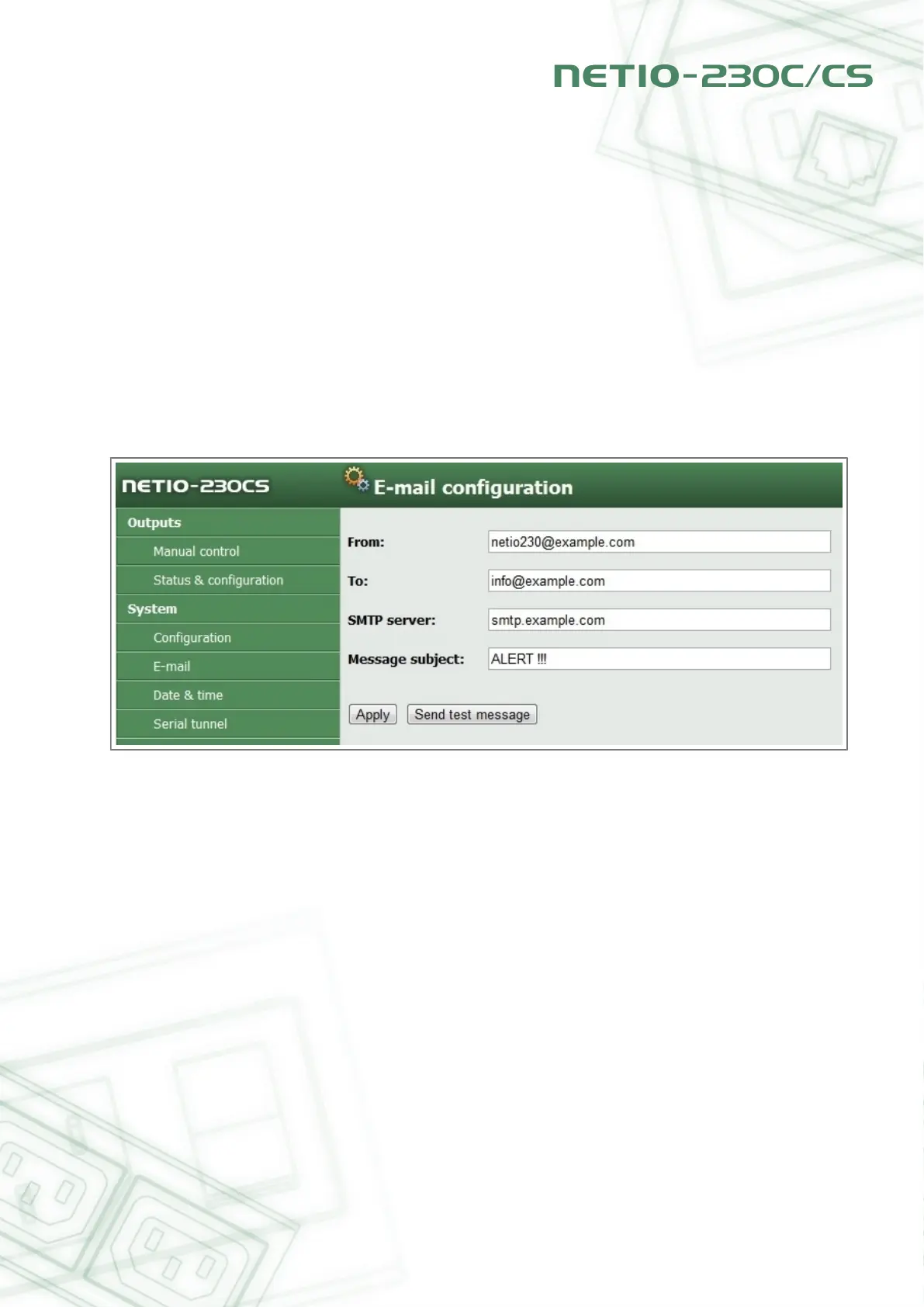 Click Apply to save the settings. The button Send test message is used to send a test message.