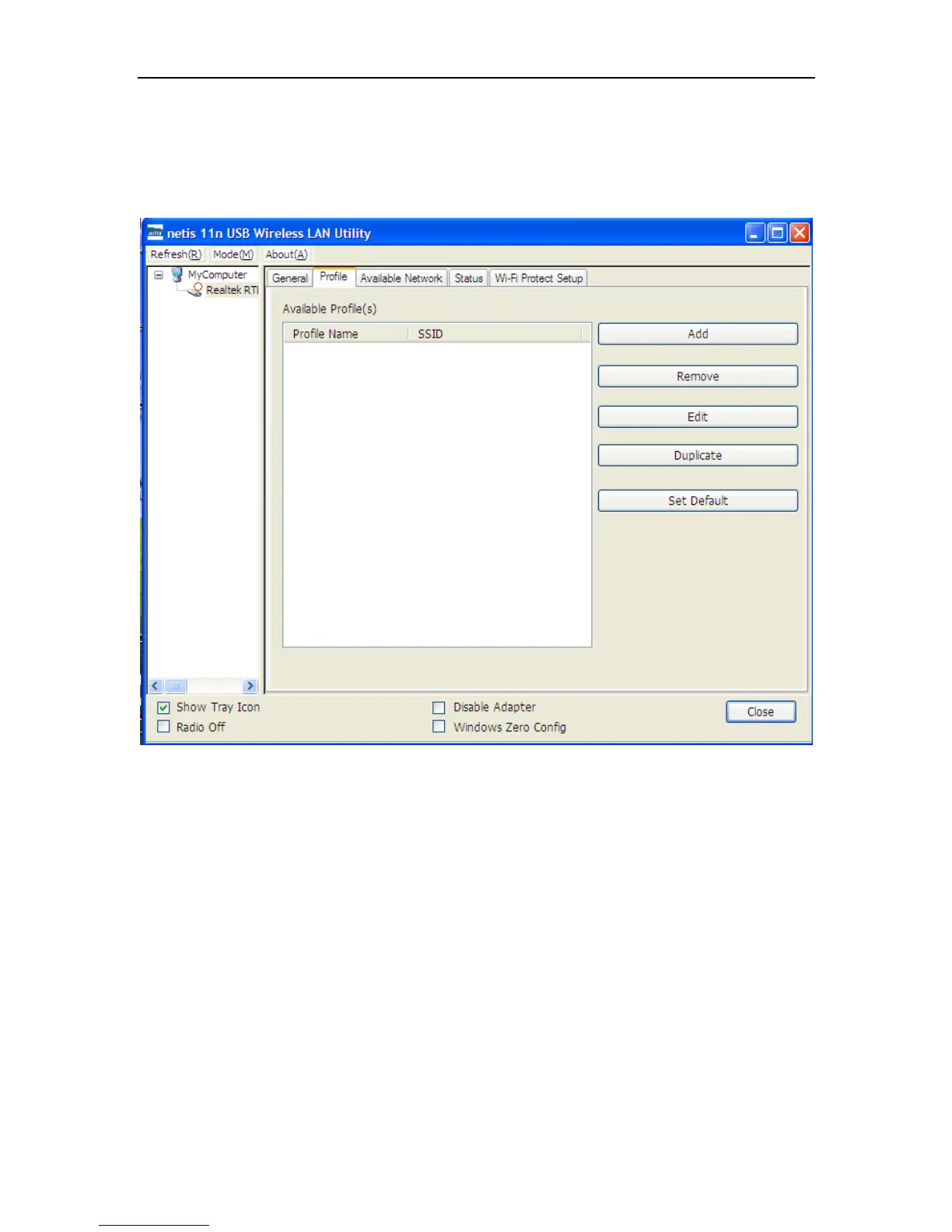 Using the Profile tab (the following picture), you can add, remove, edit, duplicate, and set default