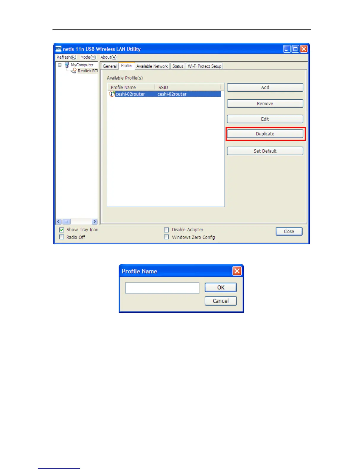 and click Set default button. The wireless adapter will use this profile to connect to wireless