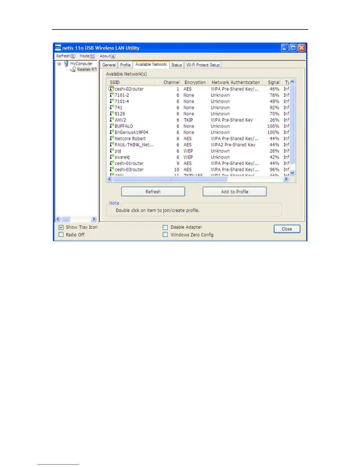 Double-click the network to which you wish to connect.