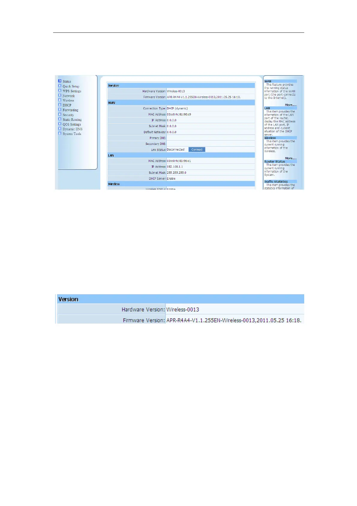 This feature provides running status information and detailed information about router.