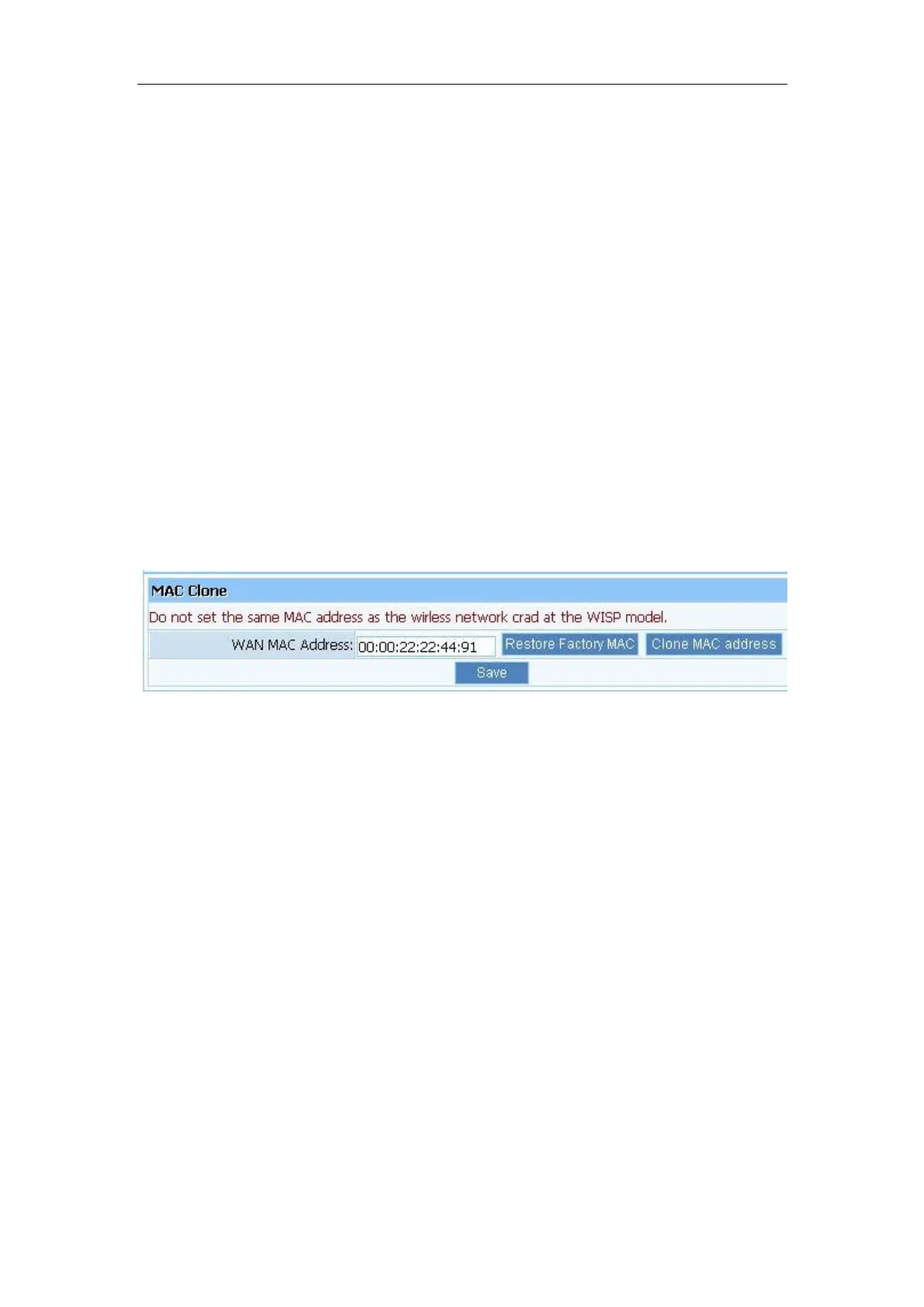 “Default MAC”. The “Clone MAC” is used for some special situations; For example, ISP only