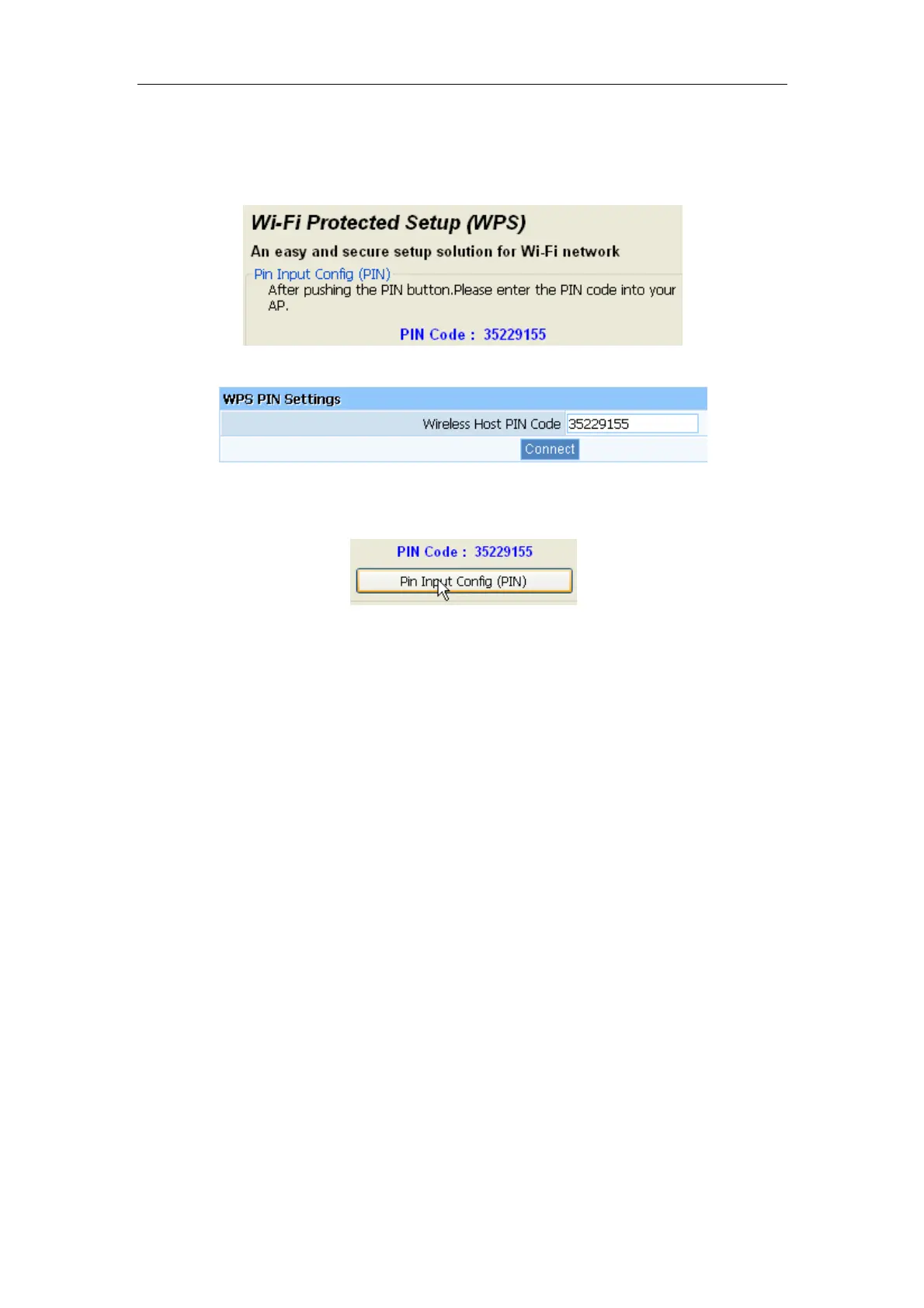 1. Select „Input PIN from AP‟ in WI-FI protect setup page, input PIN of the router, then click
