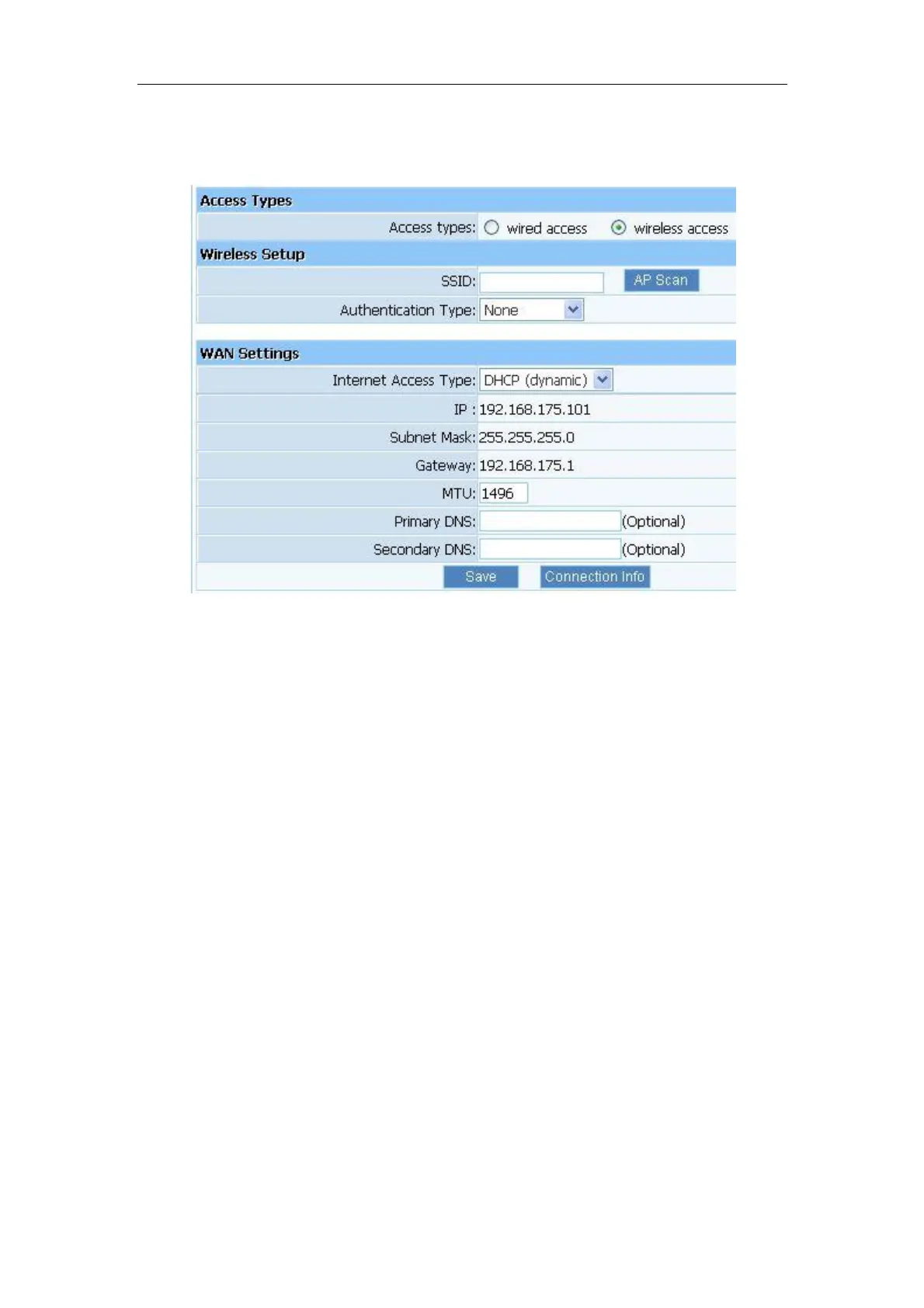Internet Access Type: Ask for your ISP to get the correct access type.