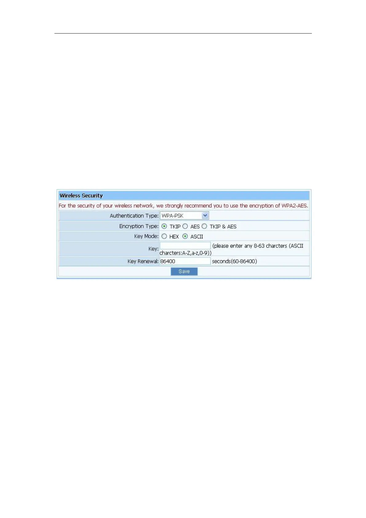 Encryption type: You can select the algorithm you want to use, TKIP, AES or