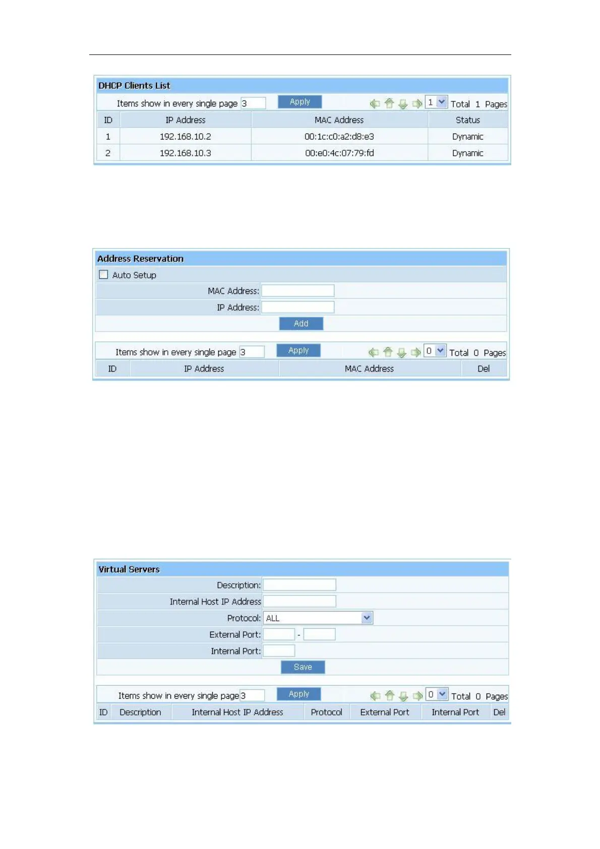Netis WF-2405 - Address Reservation; Forwarding; Virtual Servers