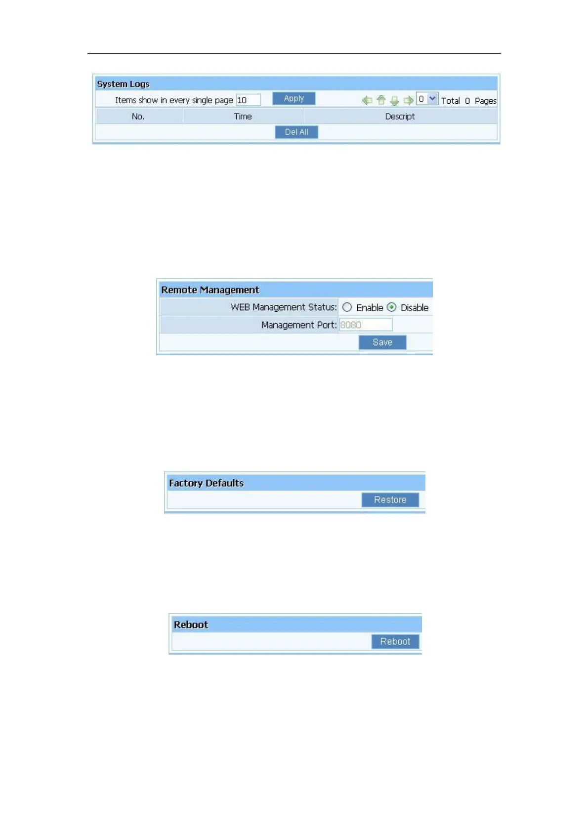 WEB Management Status: the default is disable. Router can be accessed on the remote site
