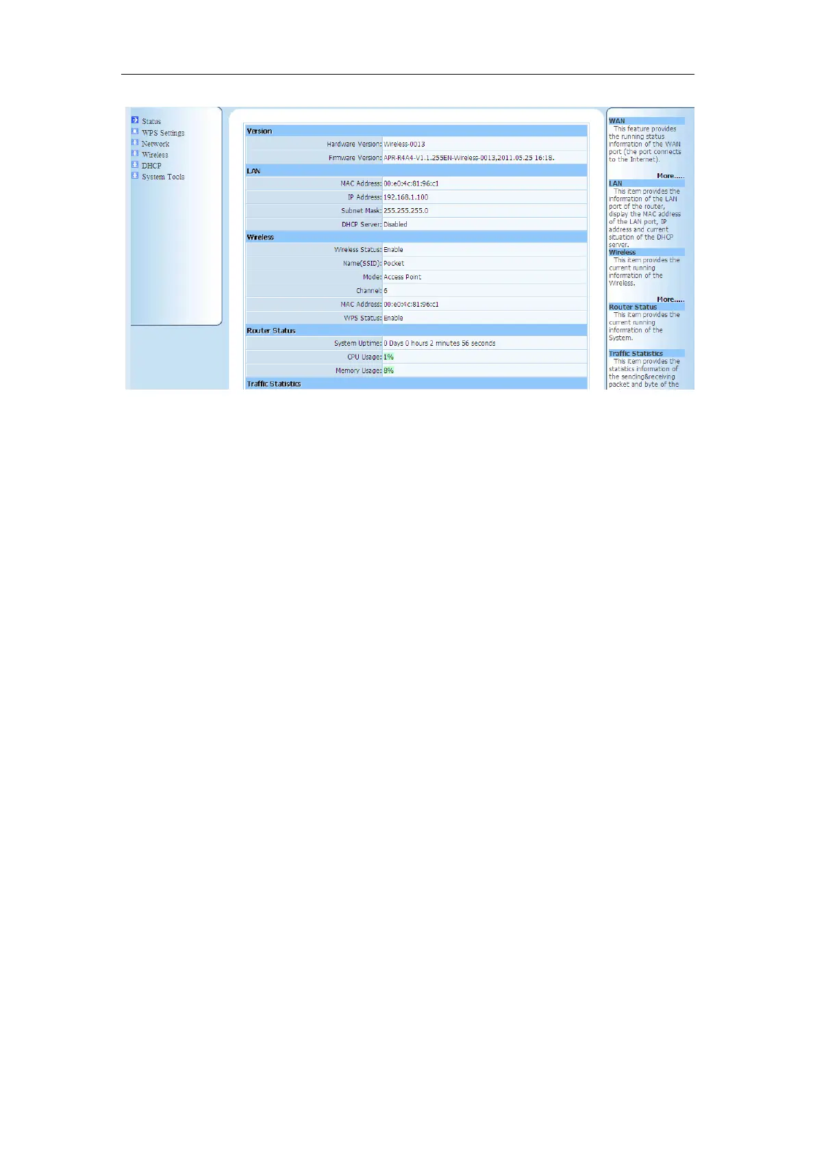 As you can see, when the device works under client mode, there are 7 items in the web page.