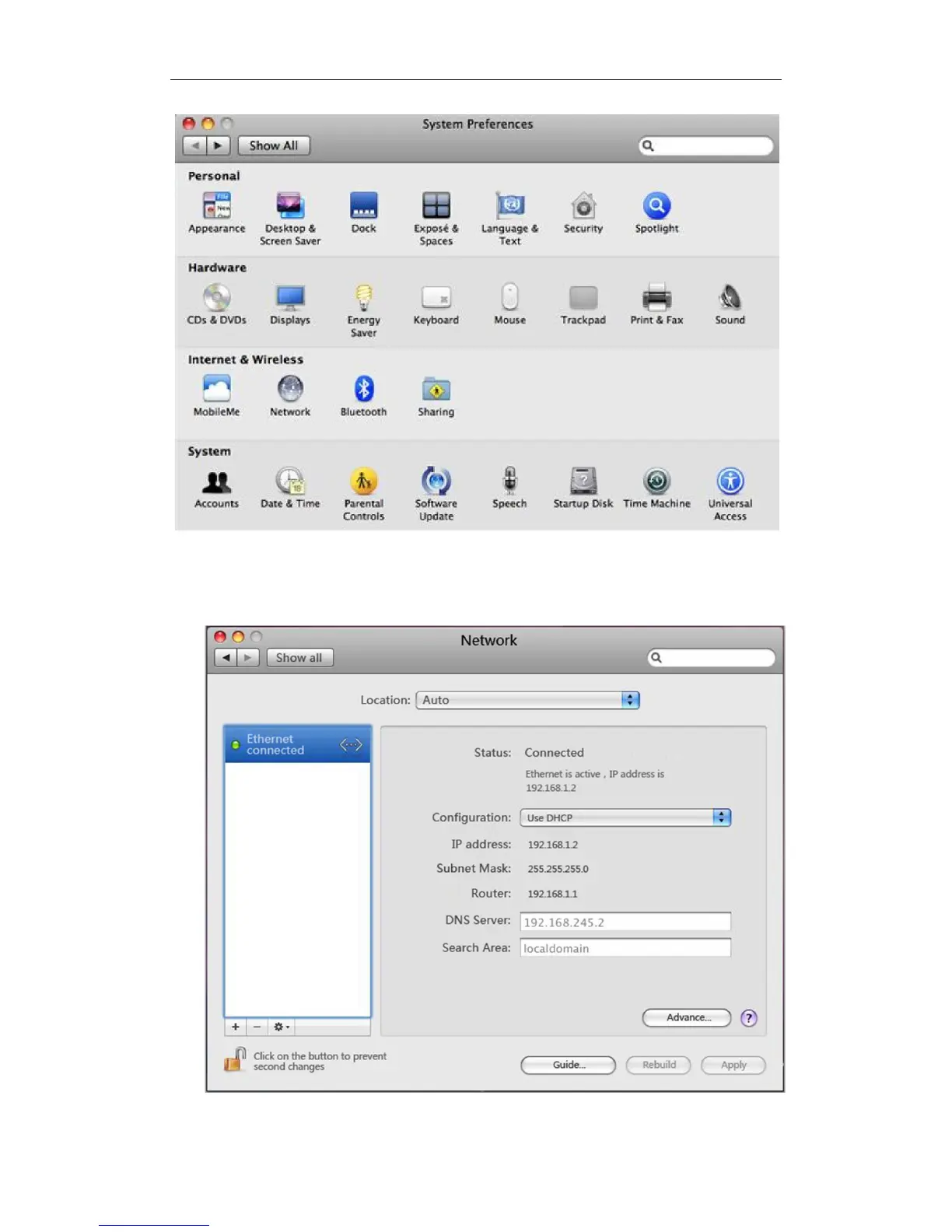 2. Click Network, Select Use DHCP at the Configuration bar, the system will get the IP
