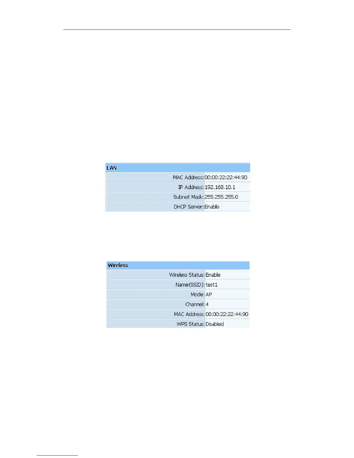 Ø Wireless status: Display wireless interface status is enabled or not