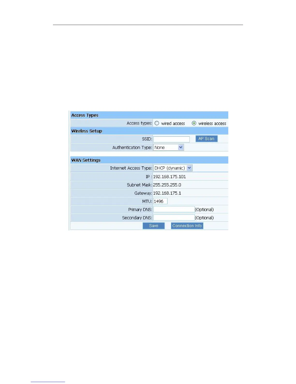 Ø Internet Access Type: Ask for your ISP to get the correct access type.