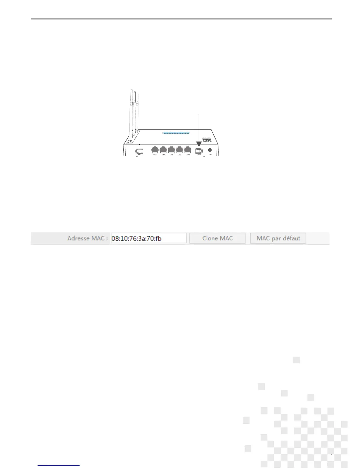 trouve au dos du routeur. Le routeur redémarre avec les paramètres par défaut.