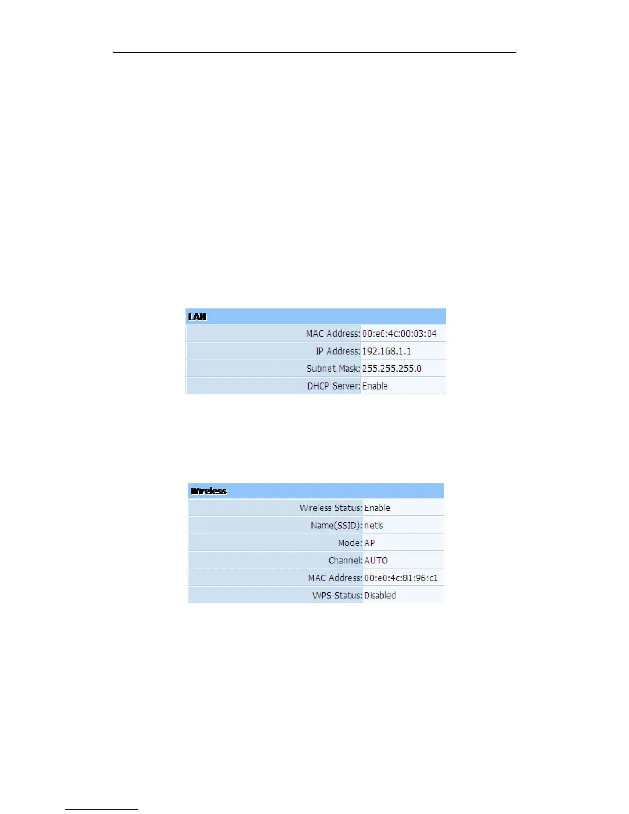This item provides information about router’s LAN port, display LAN port’s physical address,