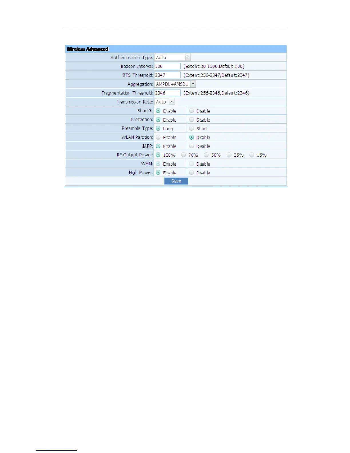RTS Threshold: You can set RTS Threshold value in this field, the valid range should be