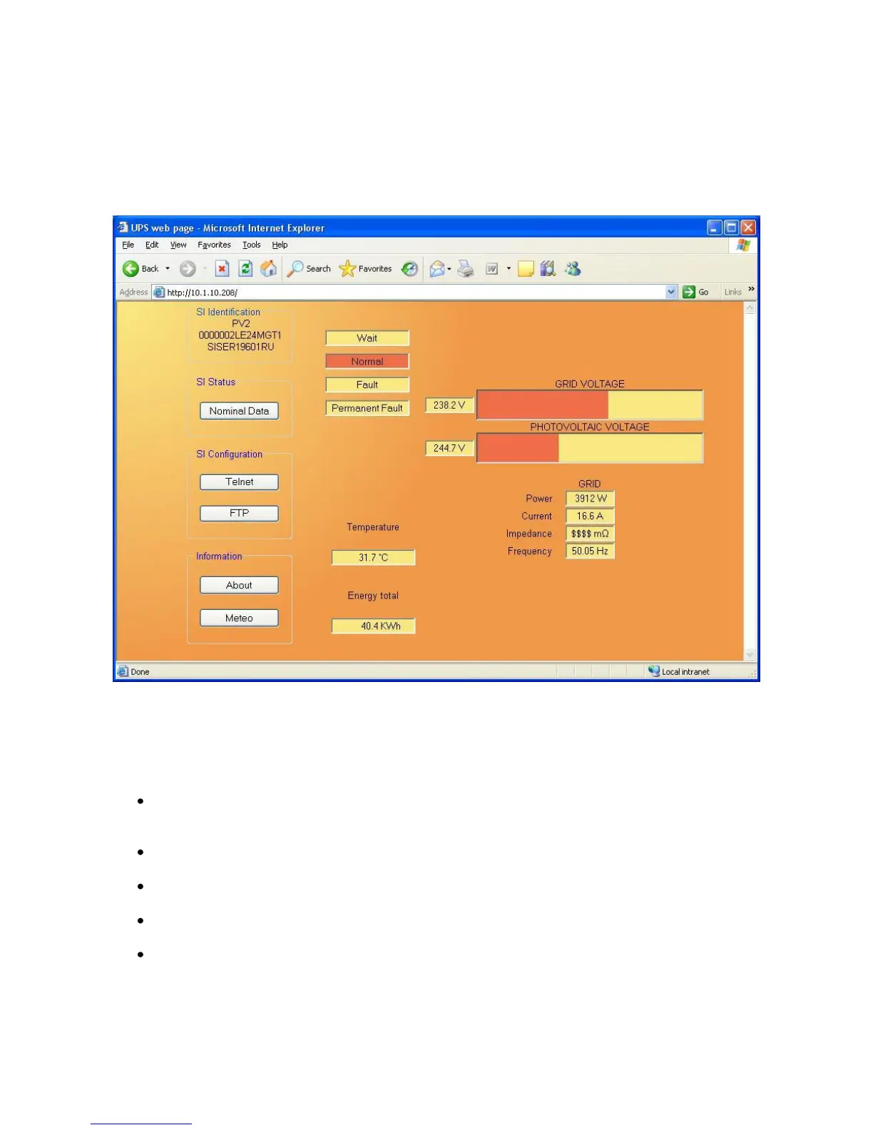 Using the HTTP (Hyper Text Transfer Protocol), the status of the inverter can be monitored by