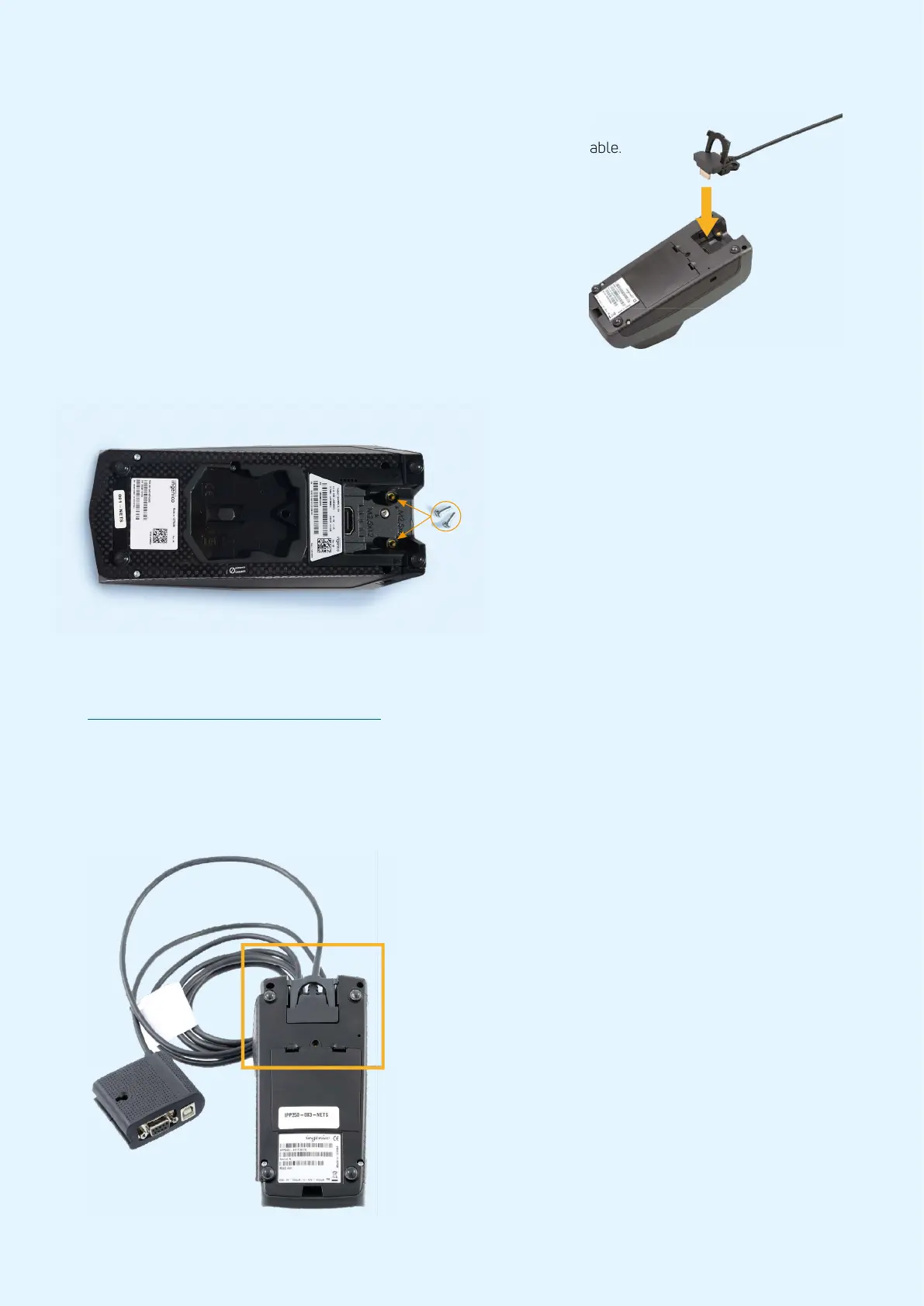 To prevent theft, it is important to fix the integration cable to the back of the terminal using the accompanying