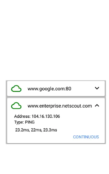 AutoTest runs. Target tests are either Ping or TCP
