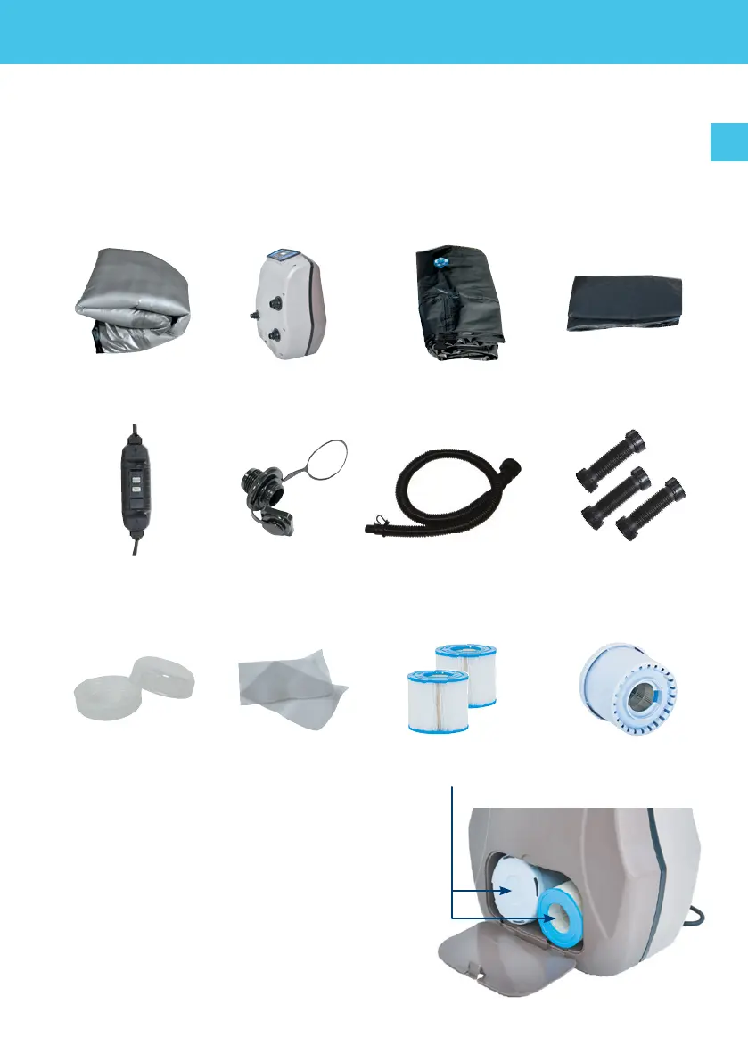 Raccords du bloc moteur Tuyau de vidange Cartouches de filtration Support de filtration