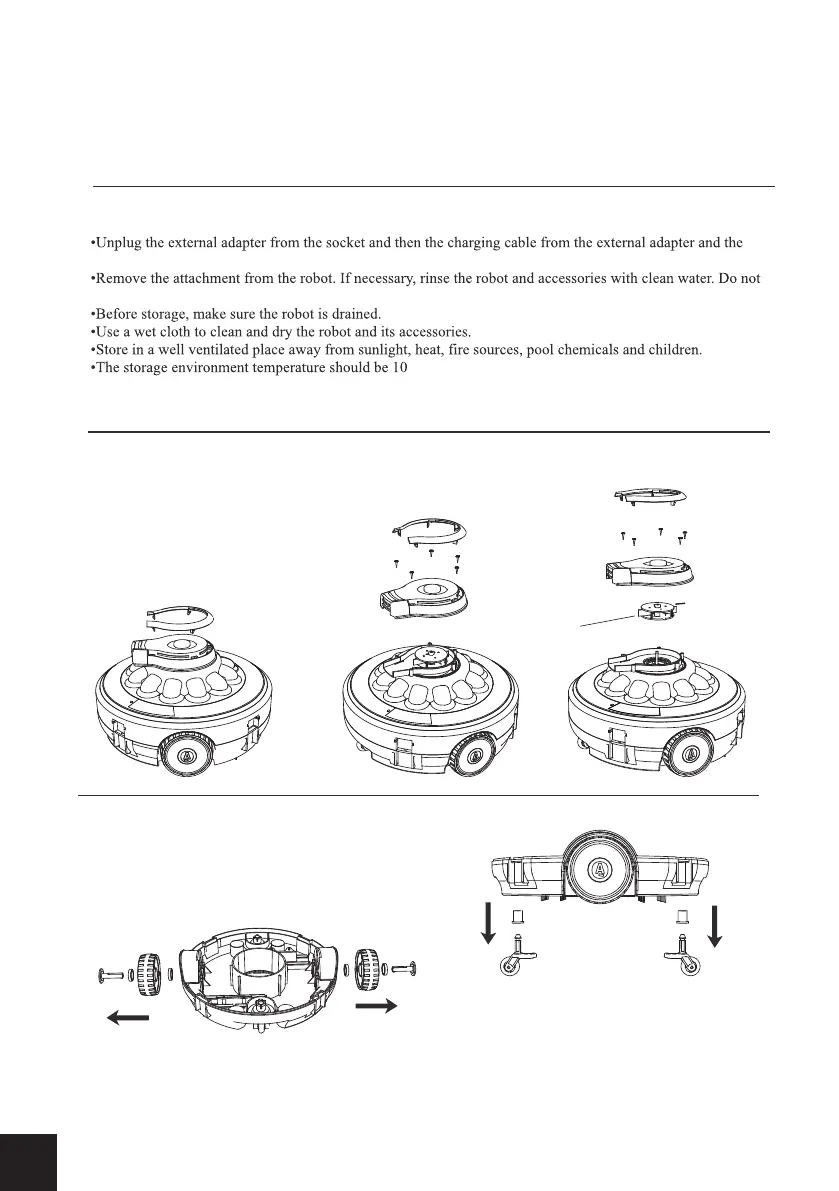 1. The battery discharges itself during storage. Make sure the robot is fully charged before storage.