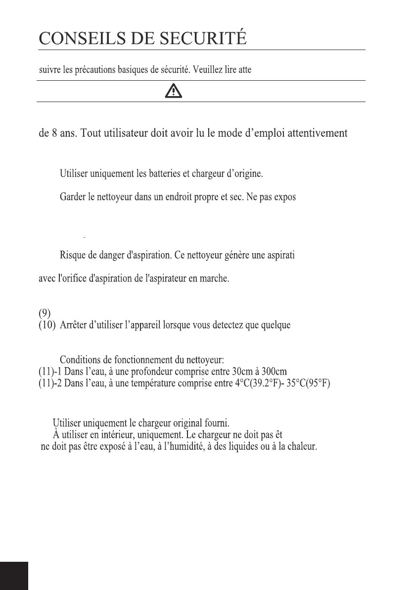 Le nettoyeur est destiné au nettoyage de la piscine et du Spa.