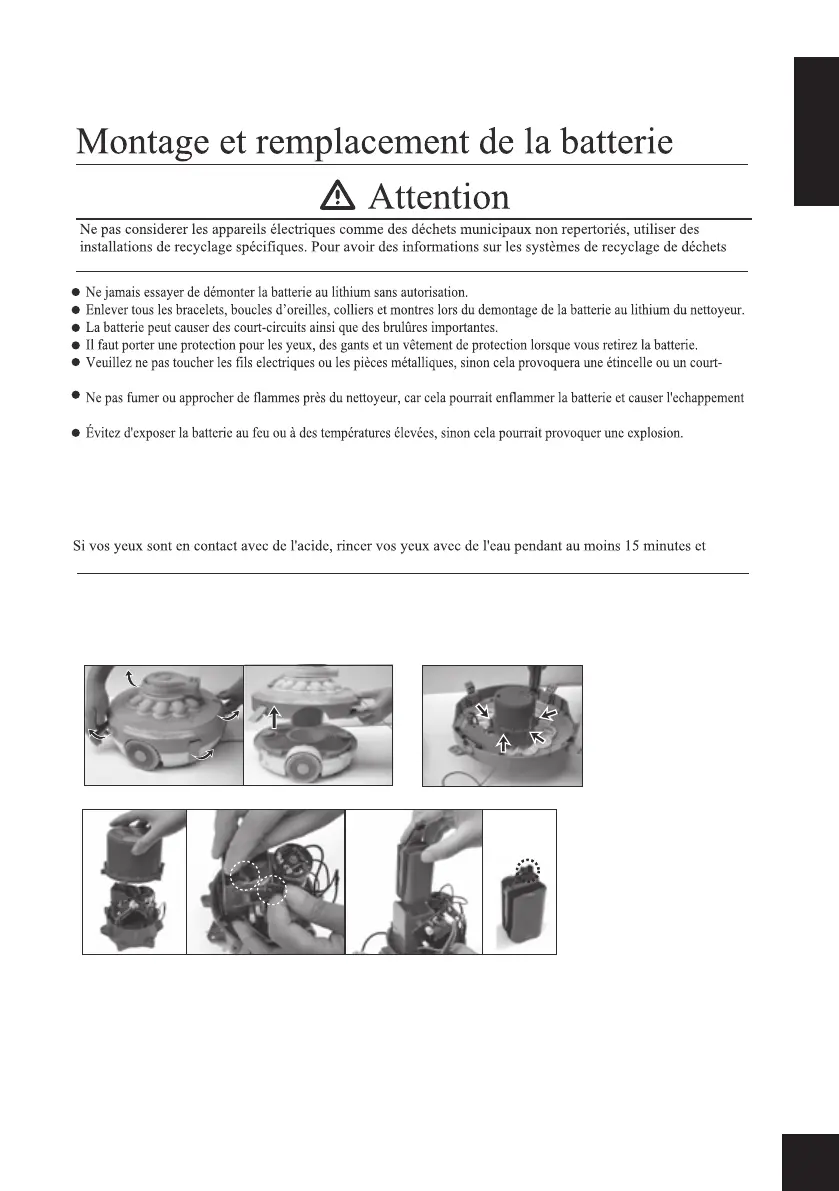 Remarque: L utilisateur devra consulter son revendeur avant tout remplacement de batterie.