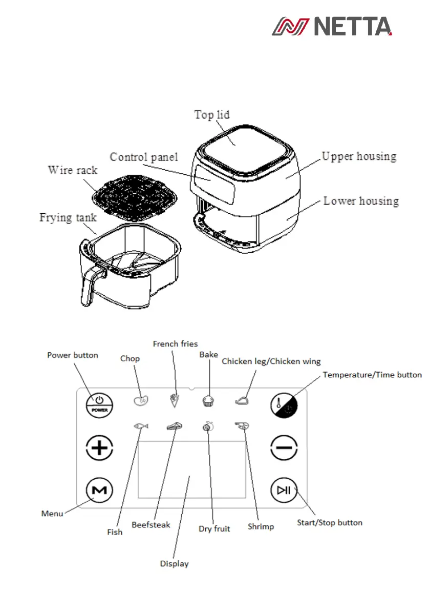 netta DF7006T-GS - Assembling the Product; Product Components; Control Panel Layout