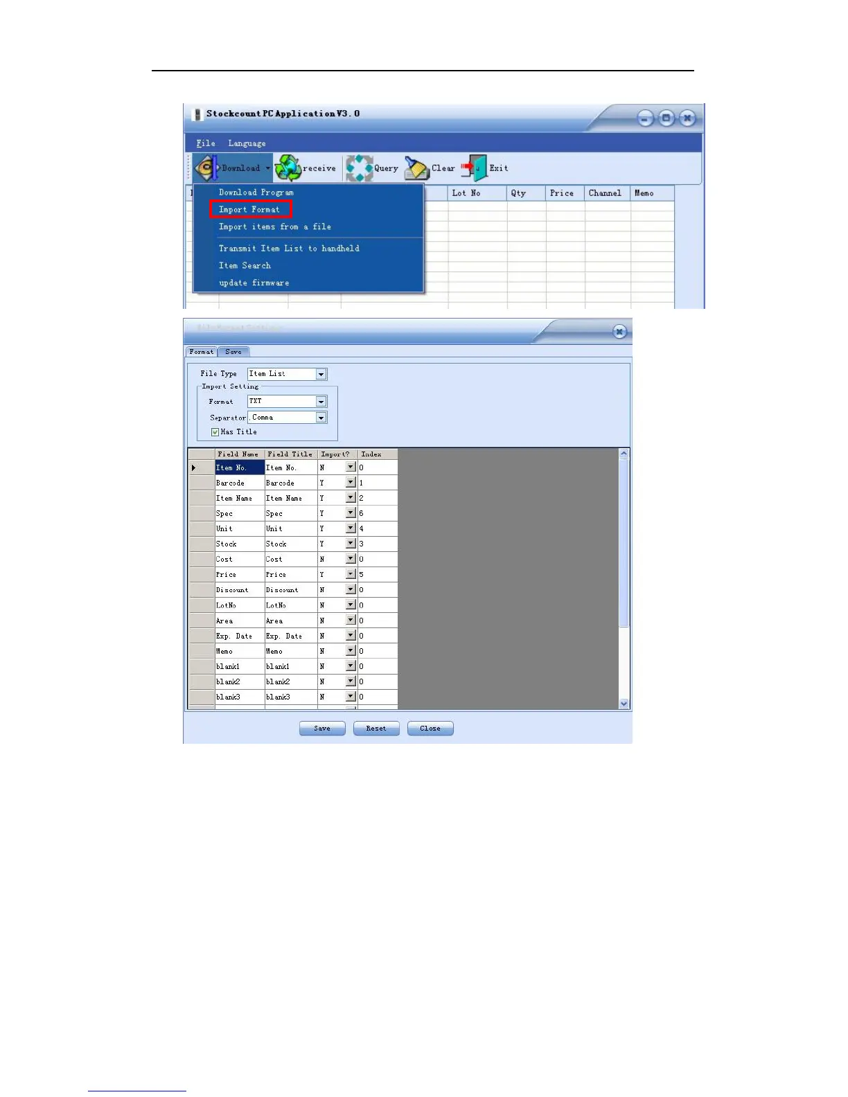 5. Field Name: default fields to be displayed on the handheld. It can not be changed.