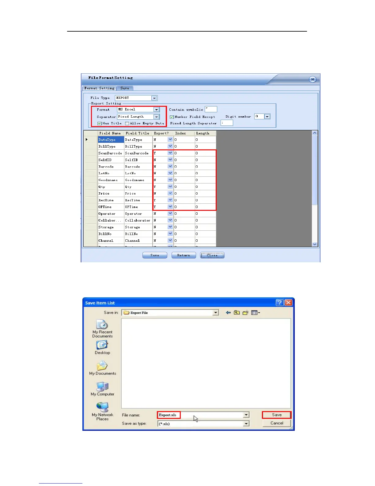 Enter a file name (eg. Export.xls) and click SAVE.