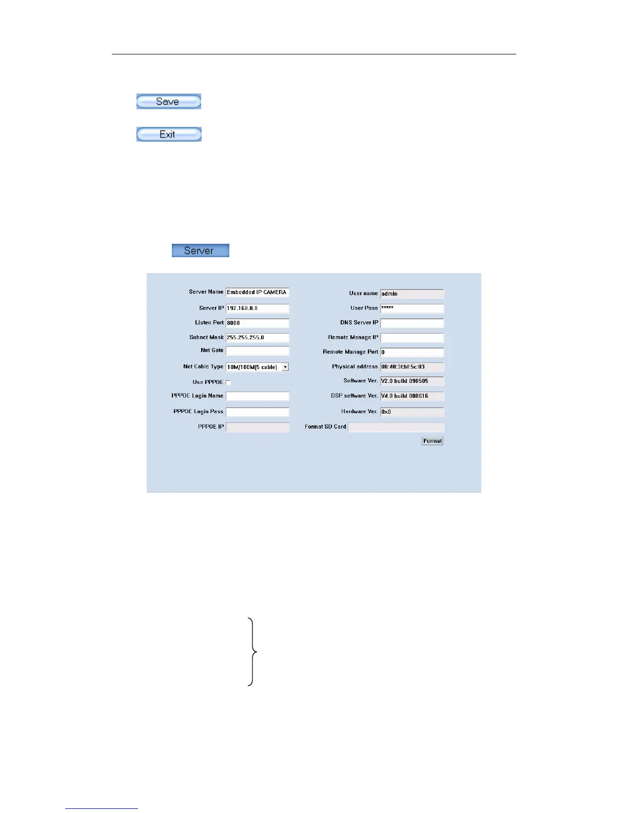 Remote setup for NV Series IP camera or DVS includes Server, Channel,