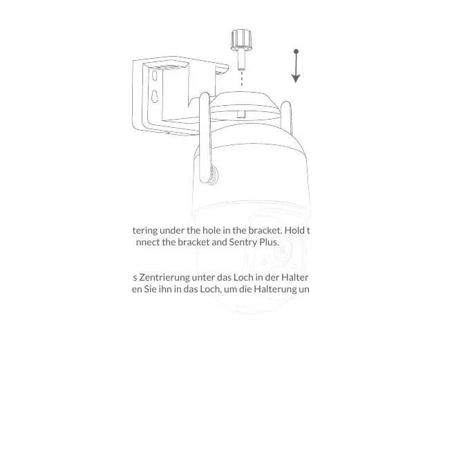 sanschluss fest und drehen Sie ihn in das Loch, um die Halterung und Sentry Plus zu verbinden.