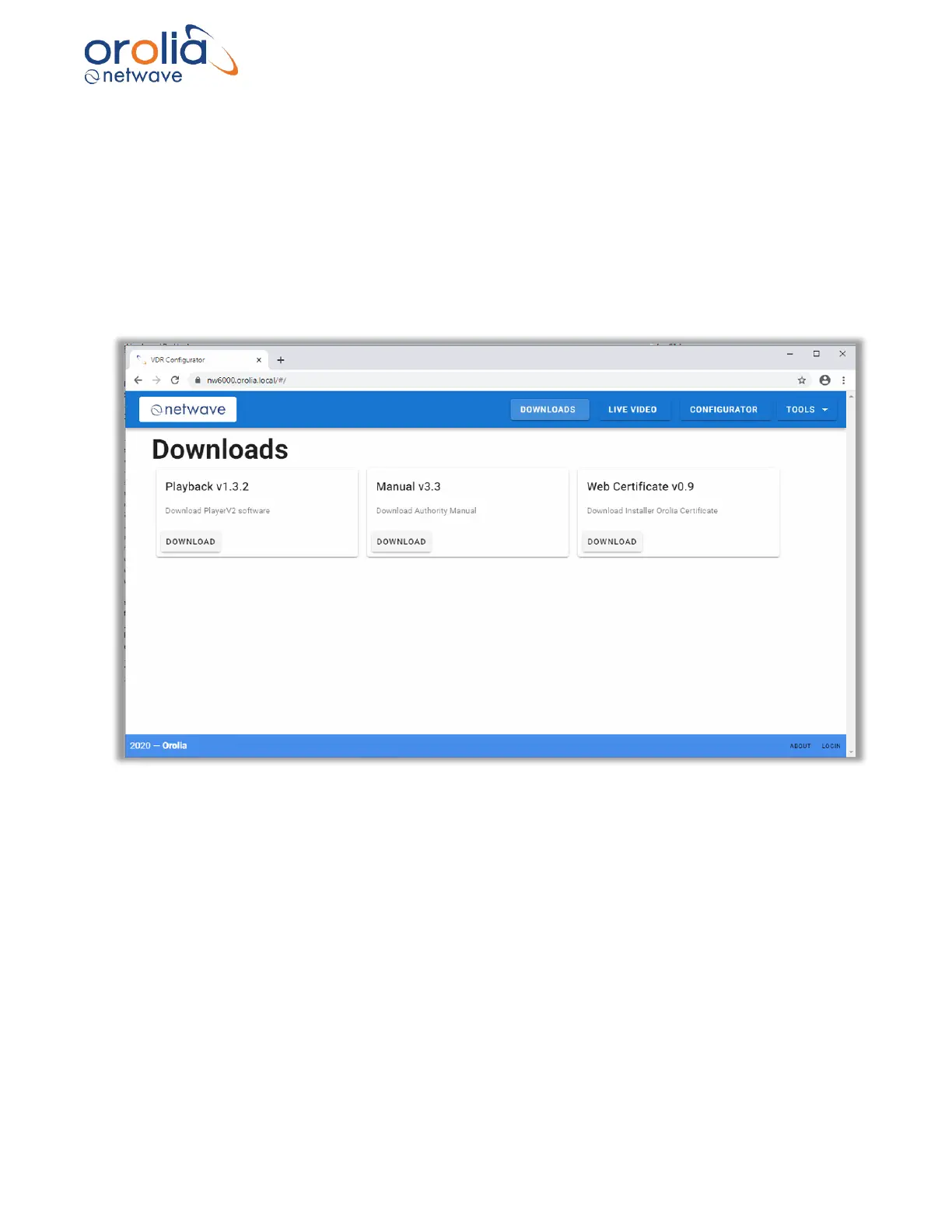 The VDR webpage can be accessed by using the http://nw6000.orolia.local on core modules with