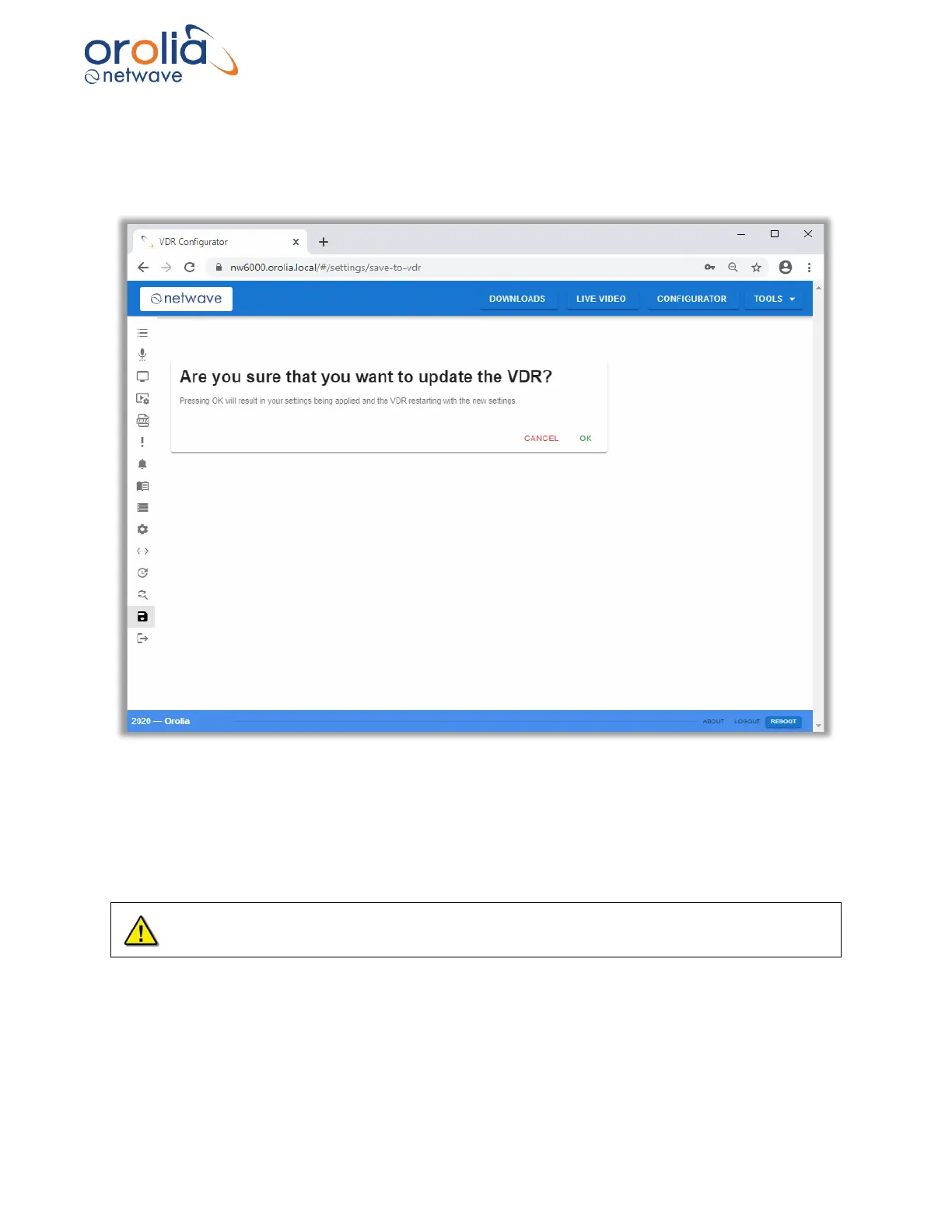 The VDR will reboot automatically if the Save to VDR is accessed and the OK button is pressed.
