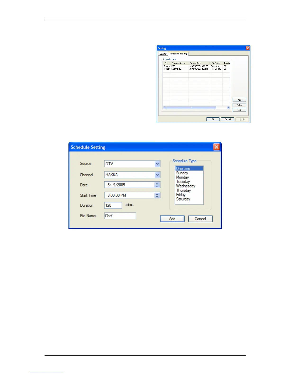 Click on the Add button to finish scheduling the recording.